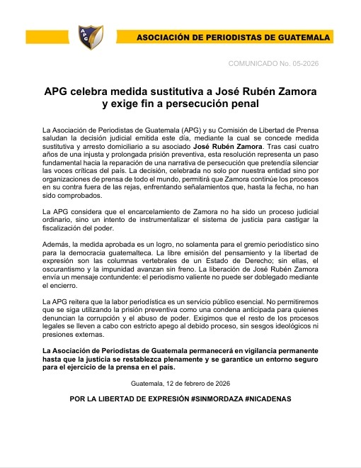 La Asociación de Periodistas de Guatemala (APG) y su Comisión de Libertad de Prensa saludan...